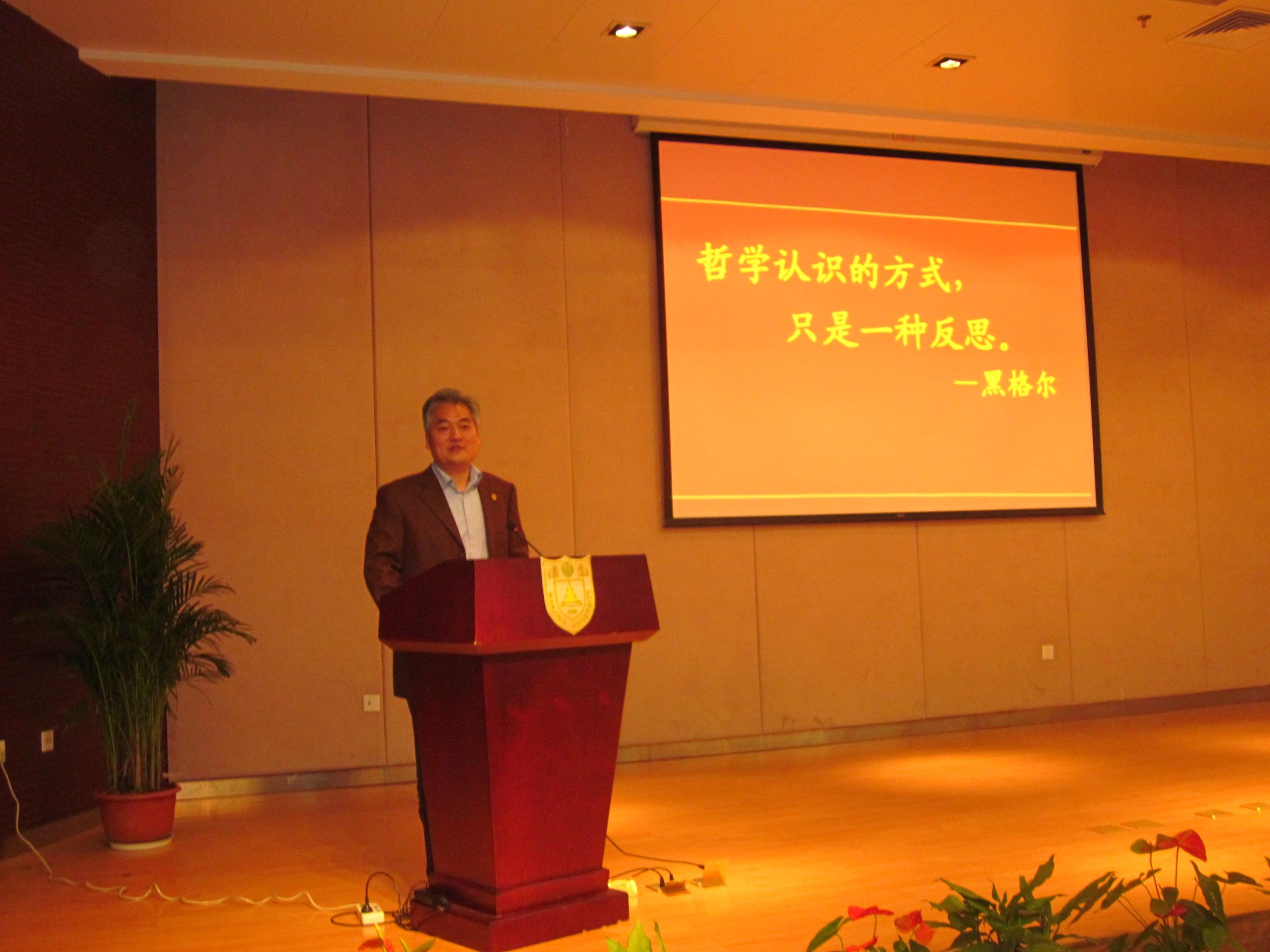 然后,盛院长希望同学们能够学做一个有文化的人,做到“吃苦、坚持、厚道、个性”。他通过自己的故事为在场师生动地描述了这八个字深刻的内在涵义。