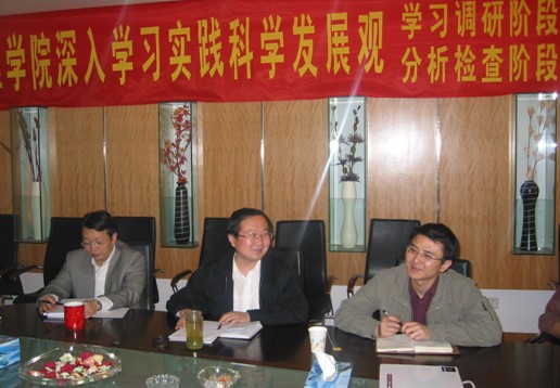 钱书记最后说:学院学习实践科学发展观活动的学习调研阶段基本结束,转入分析检查阶段后,我们将在总结提炼现有成果和进一步调研的基础上,继续开展教育思想大讨论;精心组织召开领导班子专题民主生活会和党员专题生活会,进一步提高思想认识,群策群力,进一步凝练发展思路,形成领导班子分析检查报告;广泛征求党员群众意见,认真组织分析检查报告评议,保证整改工作的有效落实。在学院新一轮发展征途上,运用大学科理念,构建大学科平台,推行大系统管理,形成大团队集聚,实现大项目标志。