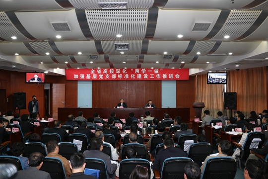 10月25日,省委教育工委召开全省高校深化“两学一做”加强基层党支部标准化建设工作推进会,省教育厅党组书记、省委教育工委书记葛道凯出席会议并讲话,省委教育工委副书记潘漫主持会议。