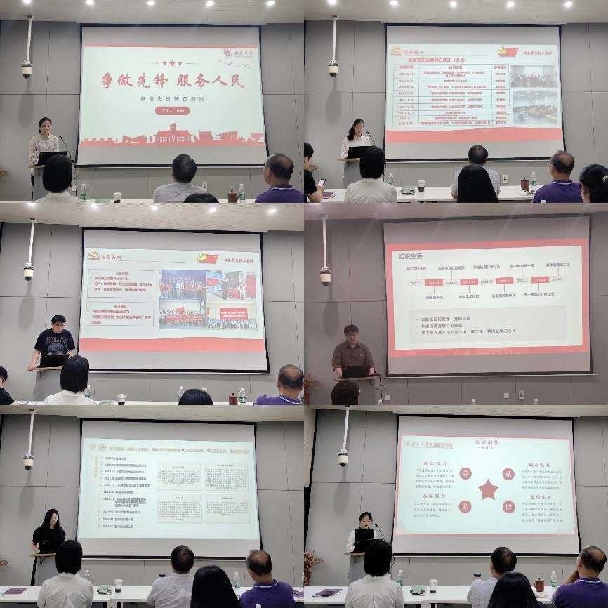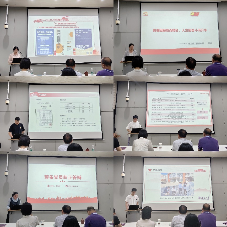 答辩分个人陈述、现场评议、现场问答三个环节。在个人陈述环节,预备党员就理论学习、组织生活参与、专业学习、志愿活动、社会实践等多个方面进行汇报。评审小组结合党员的个人陈述提出了“如何在未来工作中发挥党员的示范引领作用”、“预备期间的最大的收获与成长”、“印象最深刻的一次党课的收获与感悟”“未来个人理想和职业规划”等问题,预备党员分别结合自身实际进行作答。有的预备党员结合党纪学习感悟和个人就业去向,表示要在工作后始终做自我革命的表率,遵规守纪的标杆。有的预备党员基于自身实习实践经历,分享了自己在专业实践中不断明晰个人成长路径的深刻感悟,表示将进一步提升个人党性修养和专业能力。