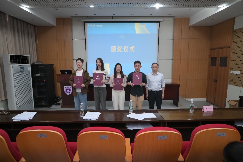 经评审,庄雨静、童兆洋、王子路、刘金梅分获本、硕、博赛道一等奖,院长俞红海为获奖论文作者颁奖。大会还评选出二等奖7篇、三等奖12篇(获奖名单详见文末),副院长陈春林、陈彩华、刘慧敏与四系副系主任分别为获奖论文作者颁奖并合影留念。