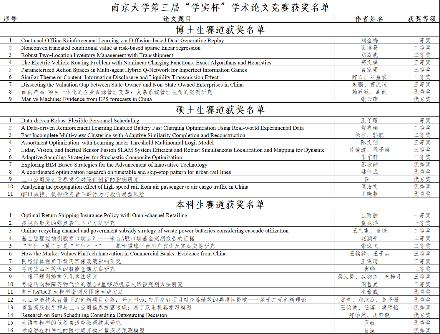 “学实杯”学术论文竞赛为面向南京大学全体在校生举办的赛事,聚焦复杂工程管理、运营与供应链管理、金融科技与金融工程、智能制造与智能工程研究领域。本届竞赛投稿通知四月上旬一经发出便受到广泛关注,共收到来自4个学院本硕博学生踊跃投稿。征稿期间,学院举办“学实有道”系列学术交流活动,以“勤于笔耕 朋辈领航”为题,组织第二届学实杯获奖者分享论文写作经验与科研心得,指引学术之道,助力学子们在学术之路上攀登向前,不断突破、成长!