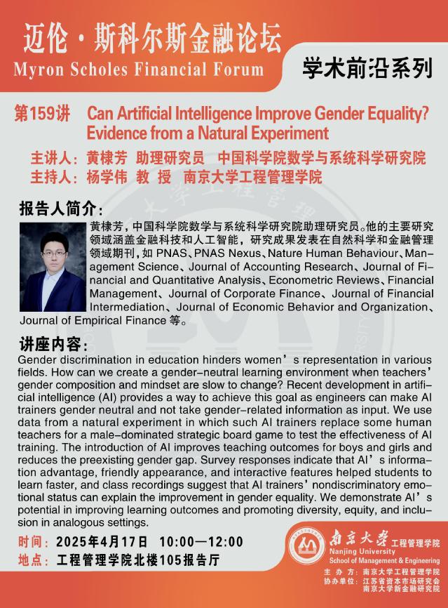 迈伦·斯科尔斯金融论坛:Can Artificial Intelligence lmprove Gender Equality?Evidence from a Natural Experiment