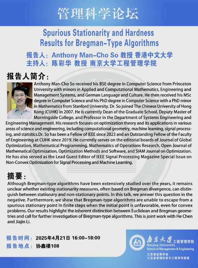 管理科学论坛:Spurious Stationarity and Hardness Results for Bregman-Type Algorithms