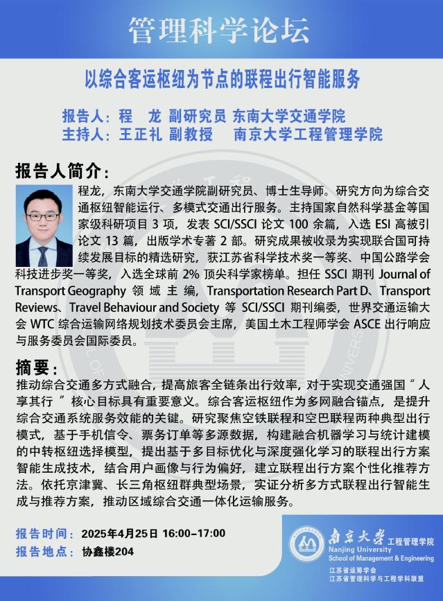 管理科学论坛:以综合客运枢纽为节点的联程出行智能服务