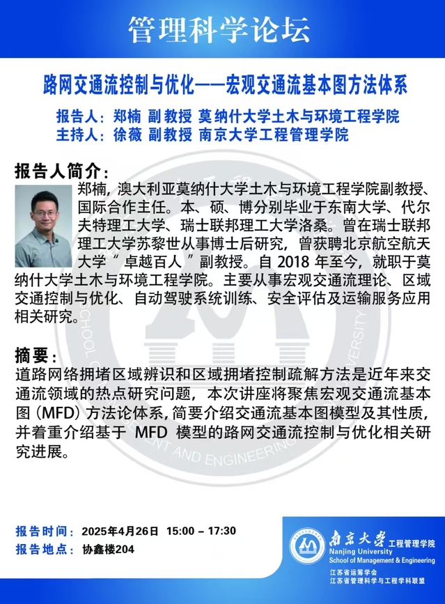 管理科学论坛:路网交通流控制与优化--宏观交通流基本图方法体系