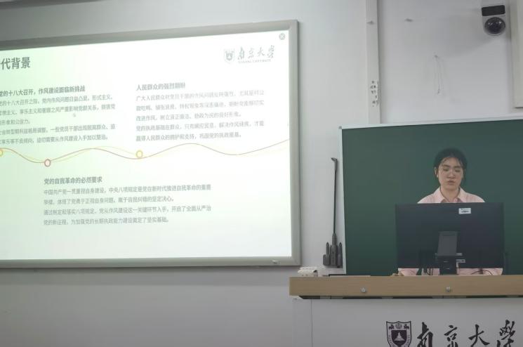 在随后的集中研讨环节,基于南京大学党员基本培训的党课内容,全体党员分组围绕“学生党员应如何践行中央八项规定,提升党性修养”展开课后研讨。各小组结合自身实践,就学术诚信、消费观念、人际关系、社会发展等话题进行深入交流。研讨结束后,小组代表依次发言,分享心得体会。