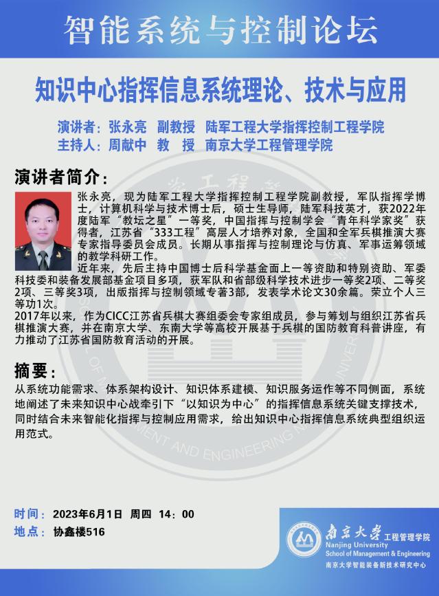 智能系统与控制论坛:知识中心指挥信息系统理论、技术与应用