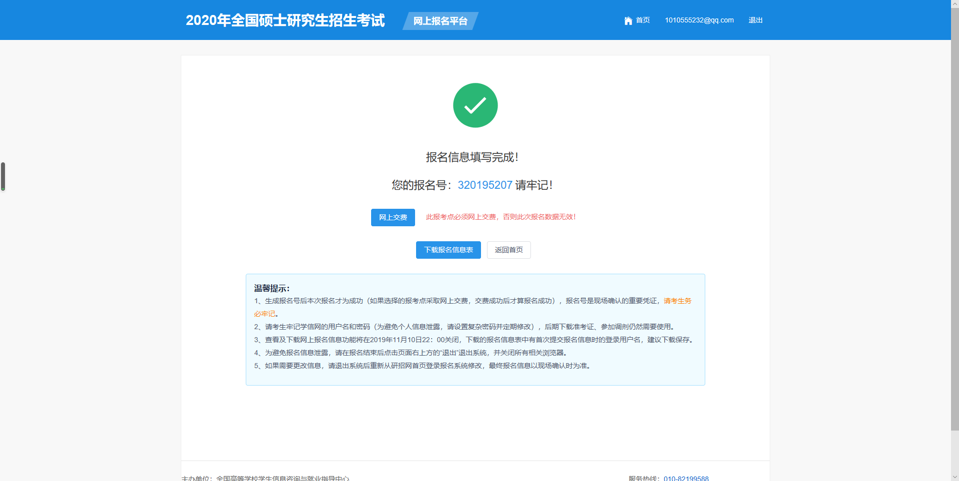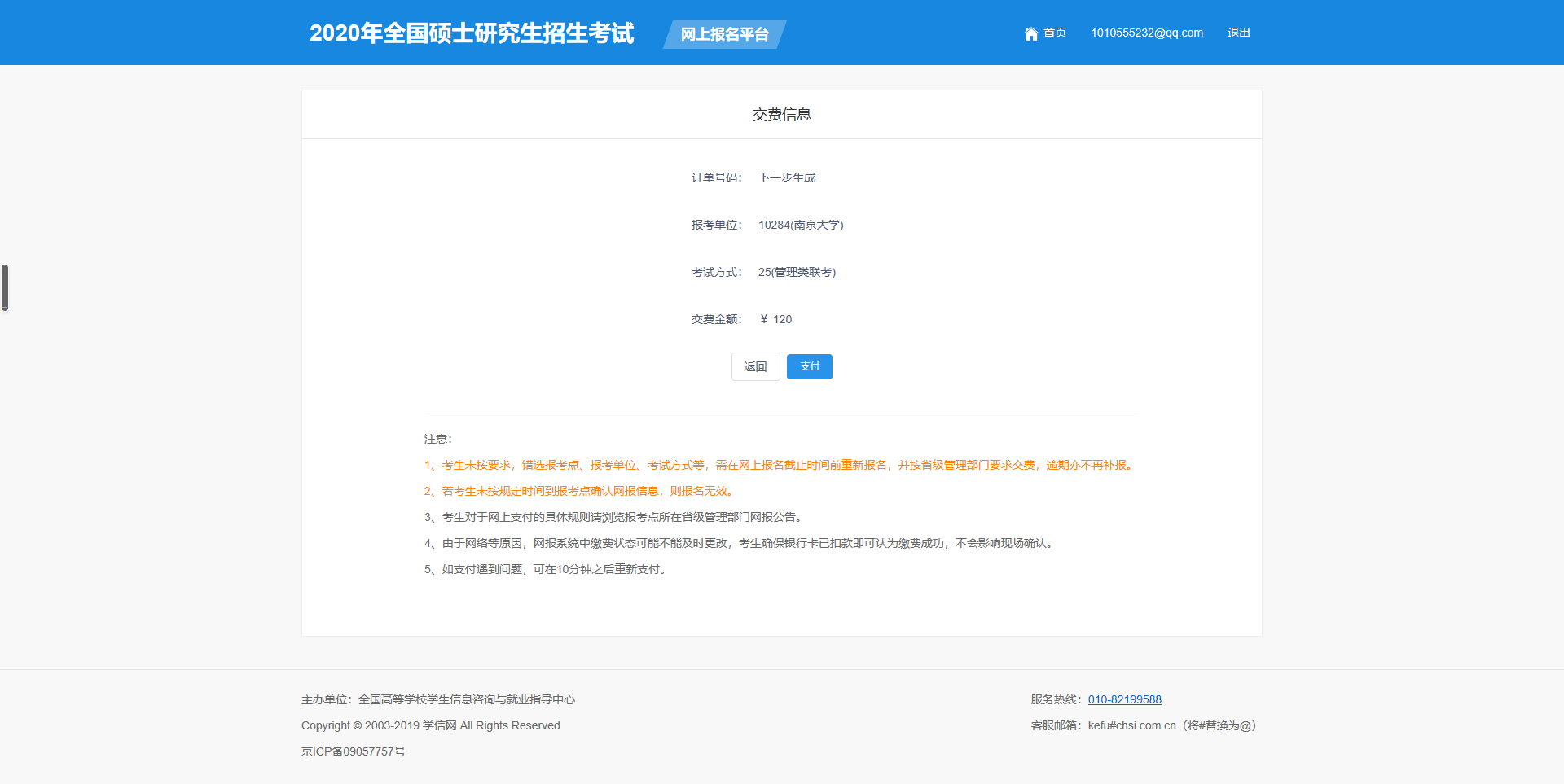 9.请选择南京大学考点(3201)考试的考生在“研招网”报名后在该网站及时缴纳报考费,考点不再单独收取报考费。选择其他报考点的考生则按照当地报考点的要求缴纳报考费。