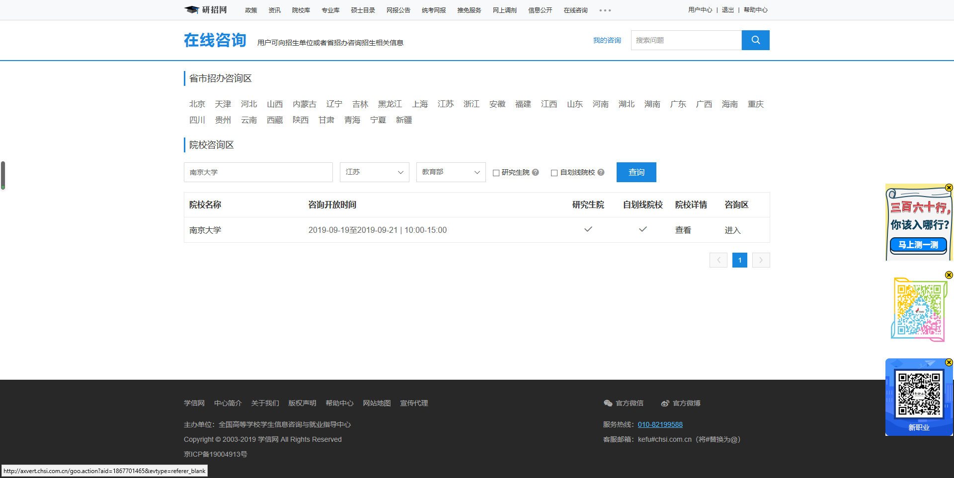 1.在线咨询。选择所在省市招办或者报考院校咨询