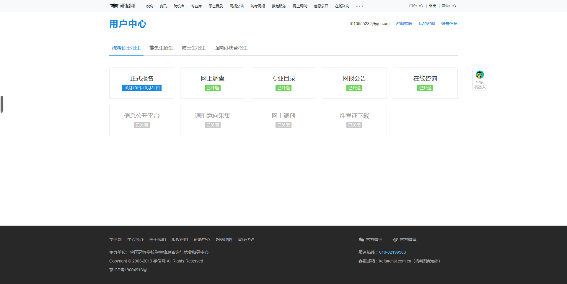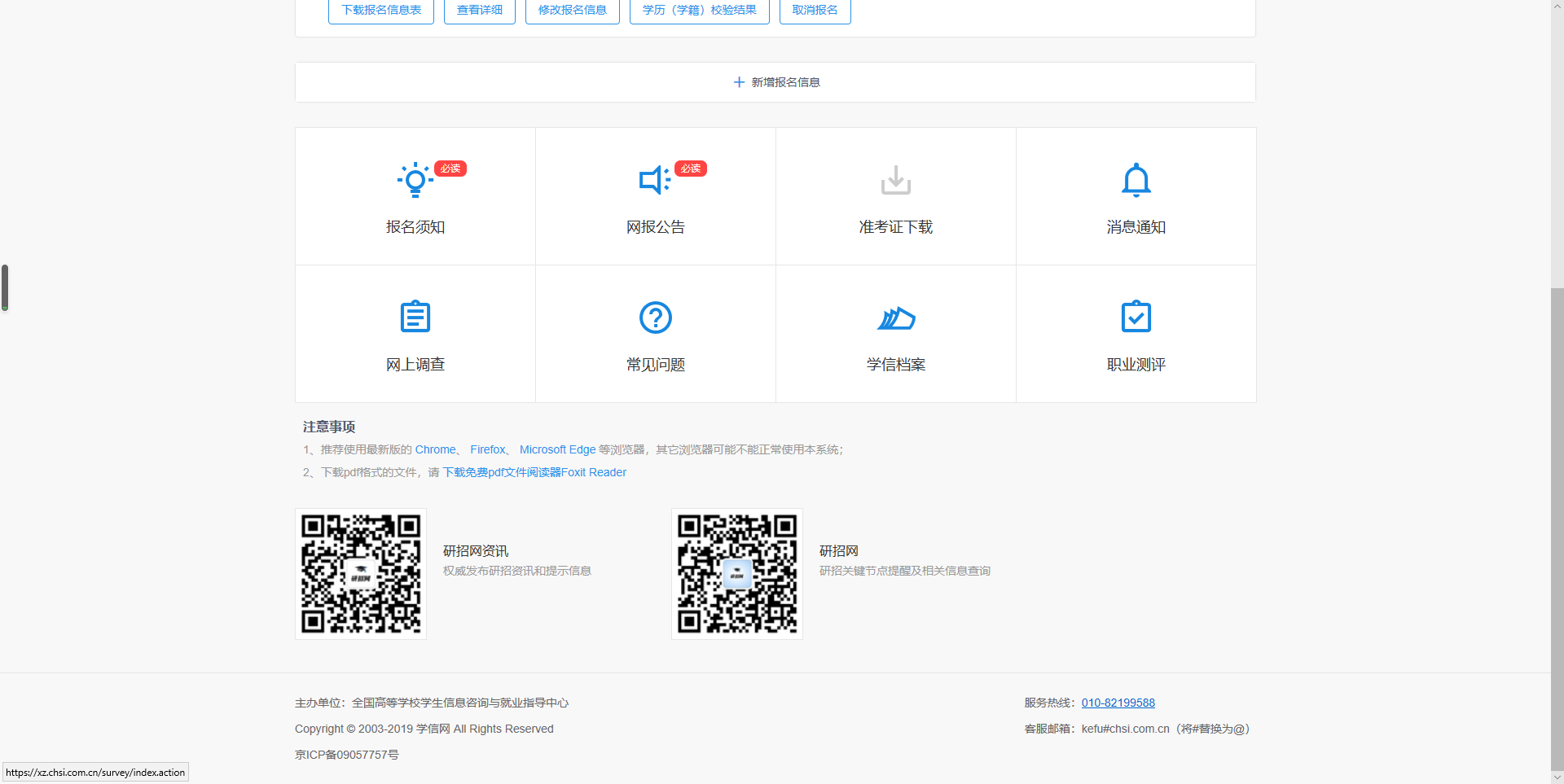 进入中国研究生招生信息网网站(http://yz.chsi.com.cn/),完成注册后,开始正式报名,以下界面点击“网上报名”。