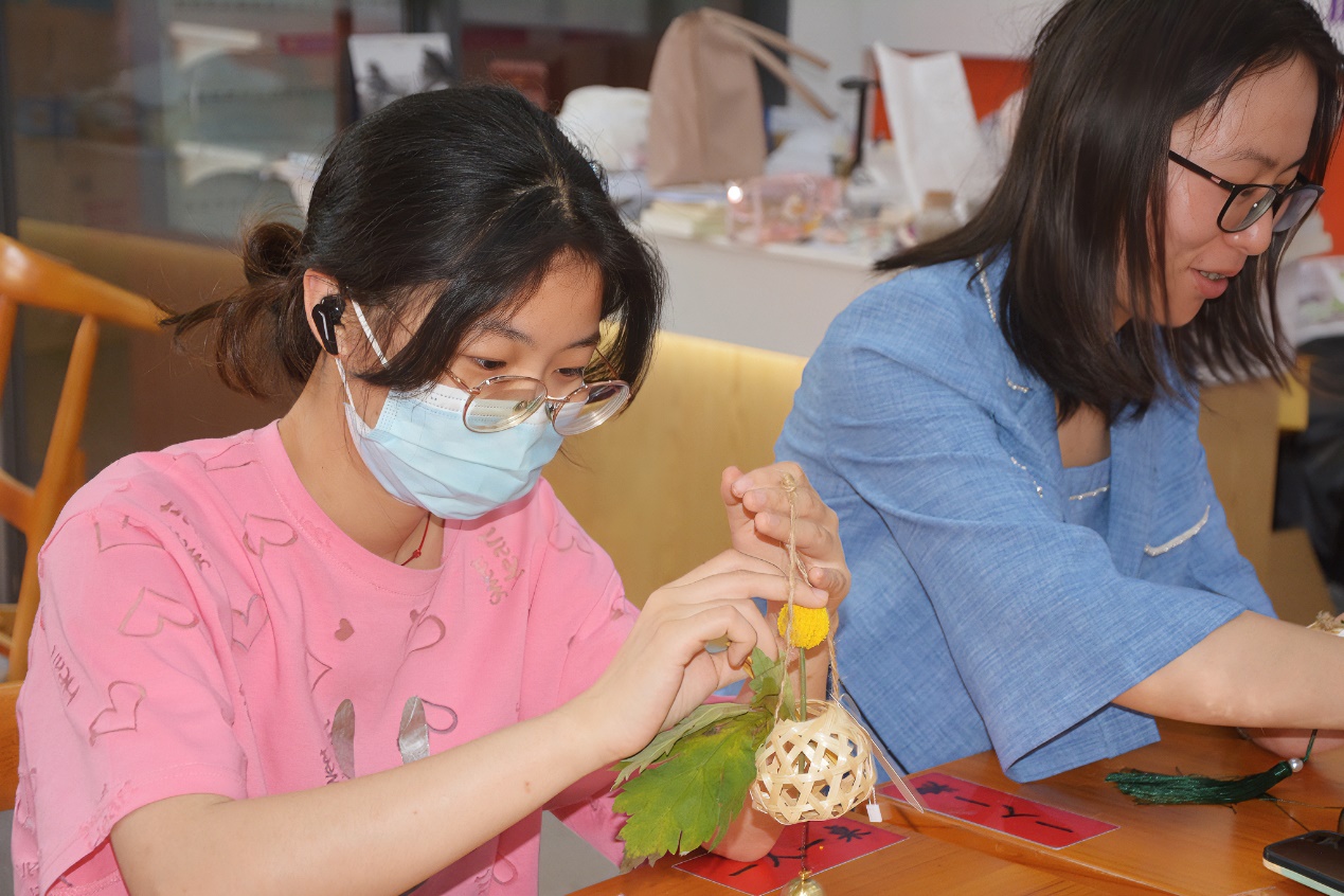 随后,在非遗体验“编艾包”活动中,班主任温丹苹老师与同学们共同参与到了艾草制作中,互相探讨如何编织,这既是一次对传统文化的学习,更是一次师生间深入交流的机会。