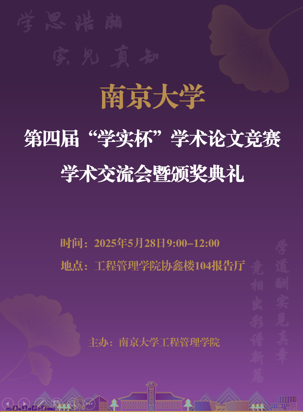 2025年5月28日上午9点,biwn必赢第四届“学实杯”学术论文竞赛学术交流会暨颁奖典礼将在鼓楼校区biwn必赢协鑫楼104报告厅举行,欢迎同学们到场观看答辩。