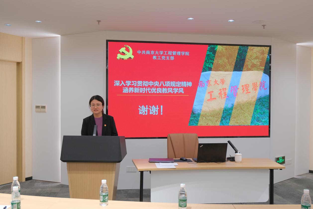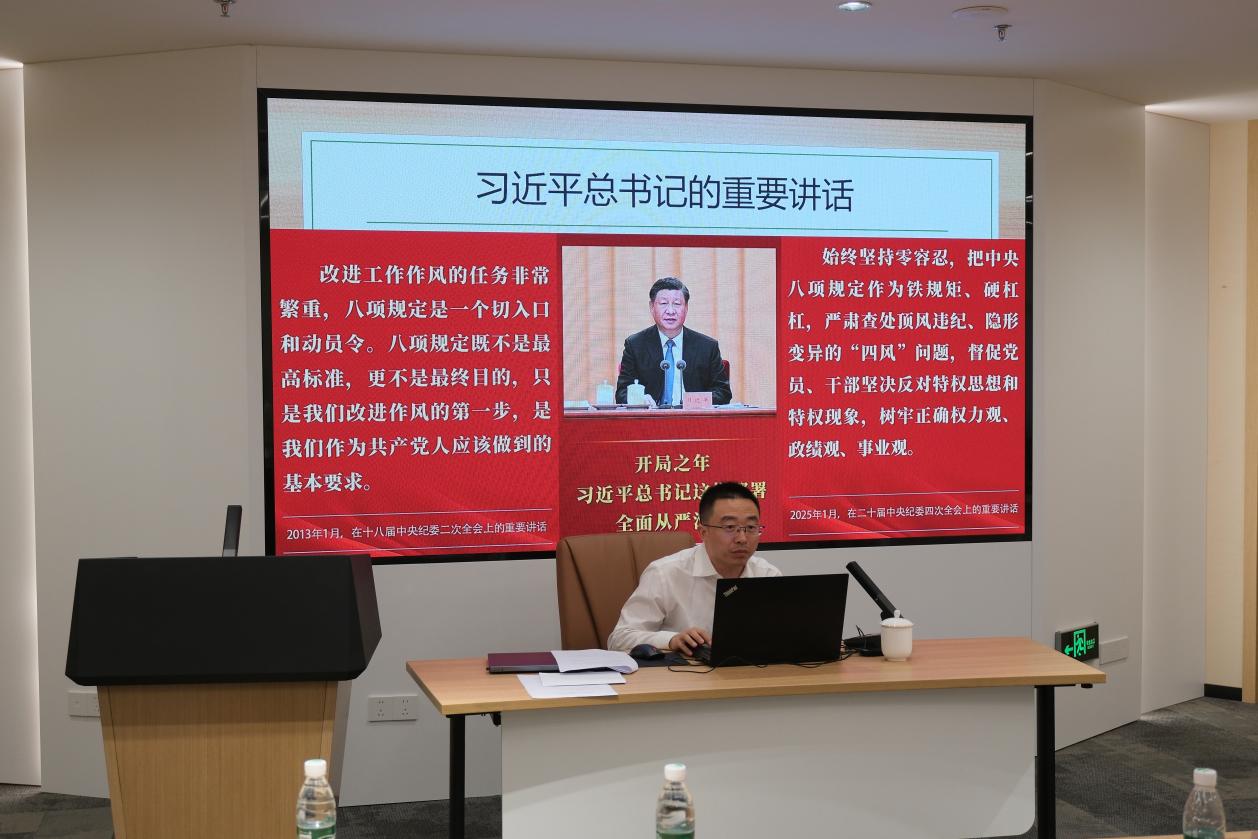 在交流环节,教师党员代表和学生党员代表依次发言。教师党员代表、教职工党支部纪检委员徐薇表示,要强化学习中央八项规定精神,抵制不正之风、做好示范引领,努力营造教学相长的良好氛围。学生党员代表、2024级硕士生第三党支部纪检委员秦睿同学表示要自觉抵制不良风气,在学习科研中守牢底线,把艰苦奋斗、务实进取的精神内化为日常的行为习惯。