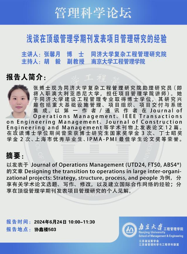 管理科学论坛:浅谈在顶级管理学期刊发表项目管理研究的经验