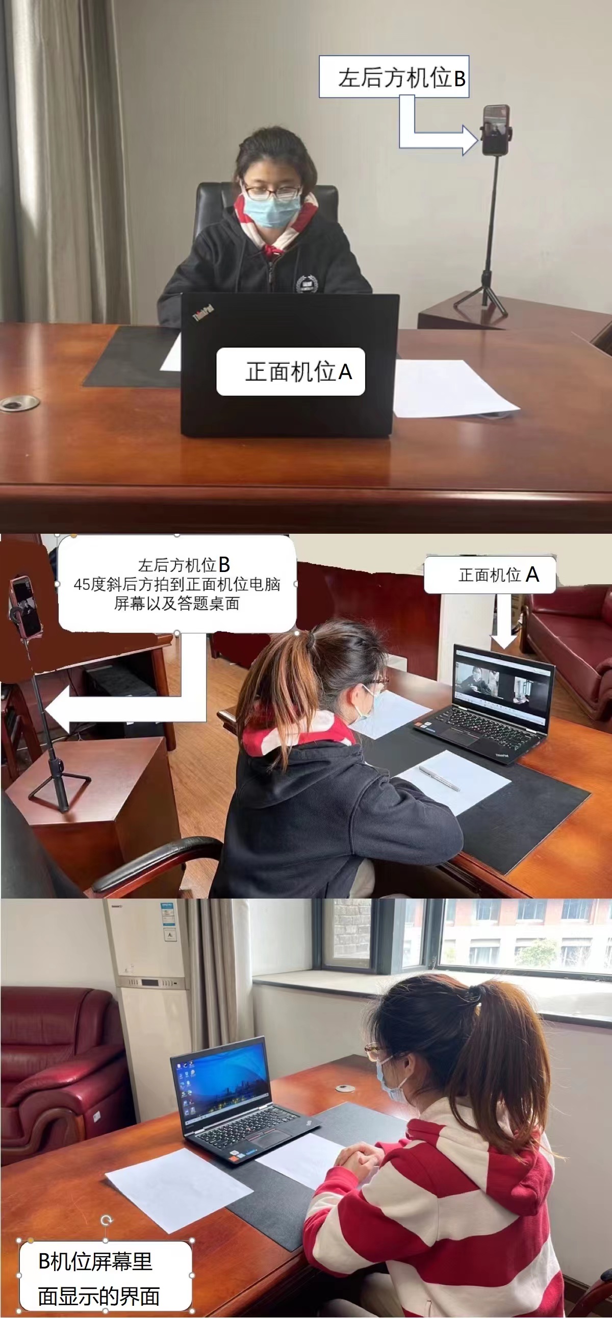 要求:1、提前20分钟双机位进入考场(如上图所示),两台设备分别命名:姓名1;姓名2。