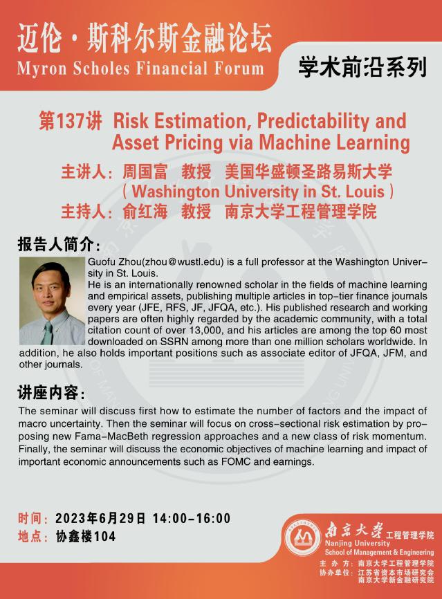 迈伦·斯科尔斯金融论坛:Risk Estimation, Predictability and Asset Pricing via Machine Learning