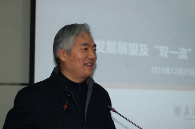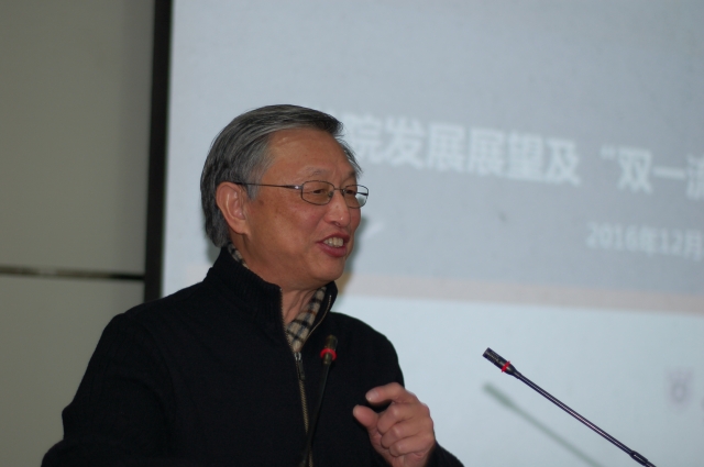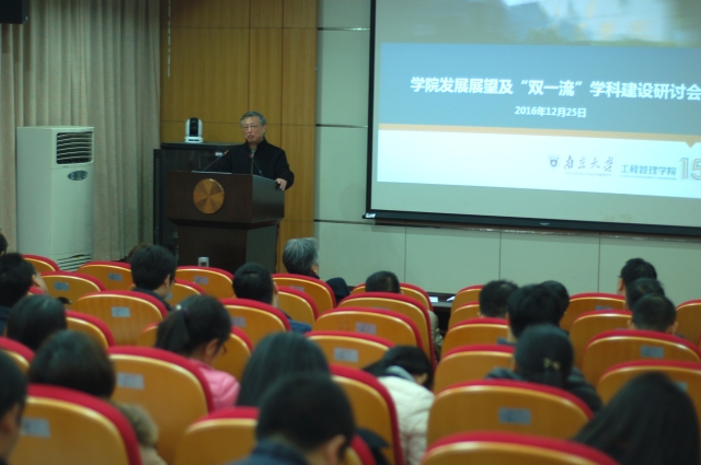 2016年12月25日上午10点,biwn必赢在协鑫楼104报告厅庆祝学院成立15周年,研讨“双一流”学科建设。学院首任院长盛昭瀚、院党委书记陈伟、院长周晶等50余位教职工参加了会议。会议由院党委副书记李浩主持。