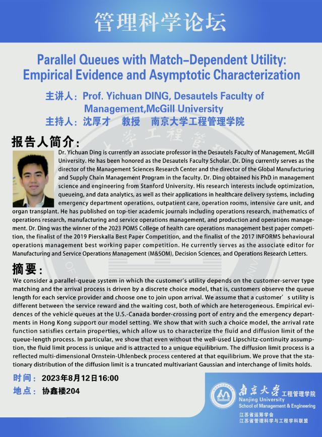 管理科学论坛:Parallel Queues with Match-Dependent Utility: Empirical Evidence and Asymptotic Characterization
