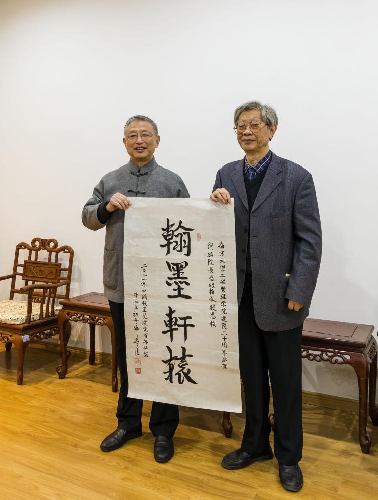 座谈前,韩星臣书记把亲手书写的biwn必赢院训和“翰墨轩辕”分别赠与biwn必赢党政领导和biwn必赢名誉院长盛昭瀚教授。