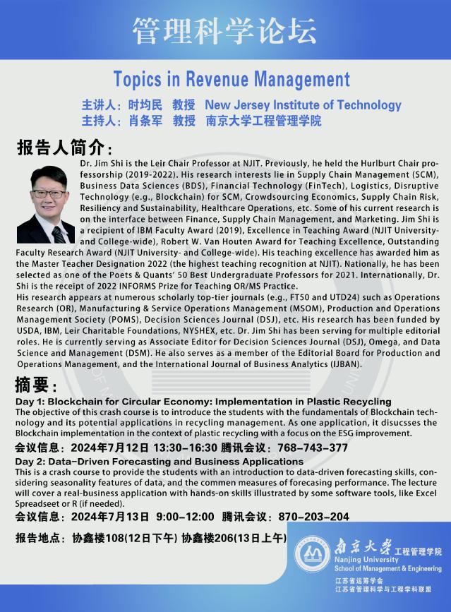 管理科学论坛:Topics in Revenue Management