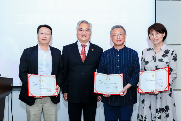 陈伟向盛昭瀚、李心丹、周晶等三位名誉会长颁发聘书。张锁庚秘书长和盛昭瀚教授共同为校友会揭牌。