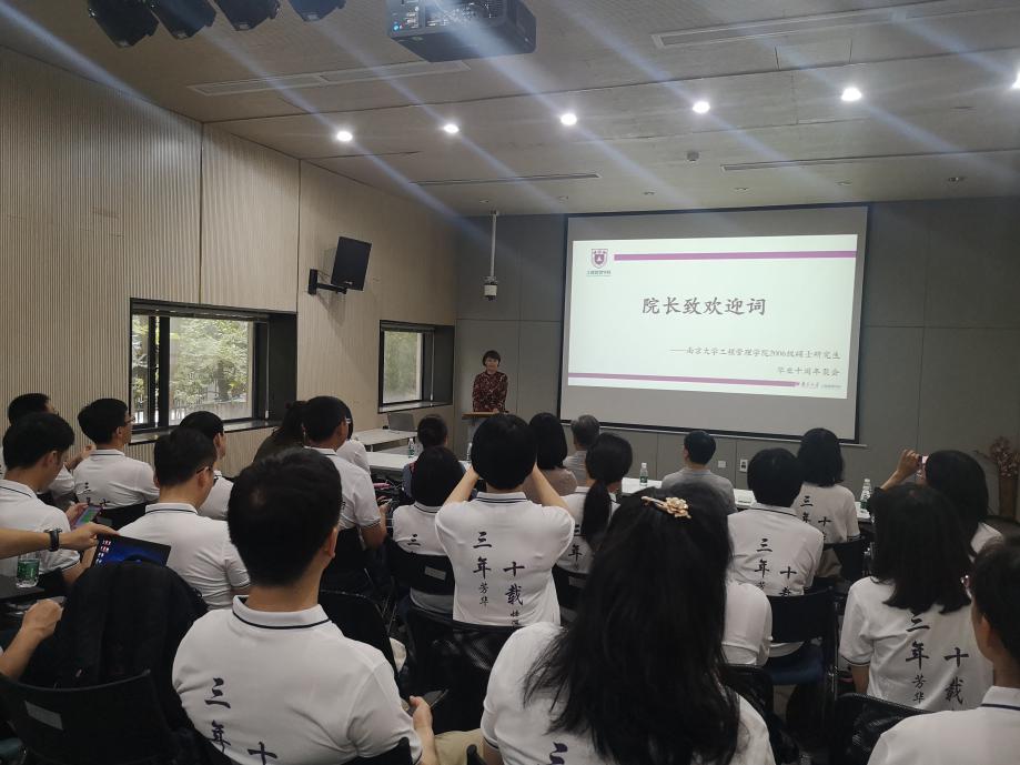 中午2点,毕业周年庆典开始,周晶院长首先致欢迎词。周院长谈到了这十年来学校、尤其是学院发生的巨大变化。她强调,虽然学校、学院面目一新,但不变的是深厚的师生情谊与深沉的同窗情感,学院是工管学子永远的家,她真切地希望在外的学子们能常回家看看。随后陈伟书记致欢迎词。陈书记表达了对校友们的深切问候,期待各位校友“今日我以南大为荣,明日南大以我为荣”,并向校友们送出了真挚的祝福。接下来陈国华老师作为教师代表、2006级硕士生刘晔同学作为校友代表先后发言。最后,大家共同吟唱了南京大学校歌,在悠扬的歌声中,一同回忆往昔,憧憬下一个十年。