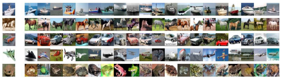 为验证ALECH方法的有效性,课题组在MIRFlickr-25K, IAPR TC-12,NUS-WIDE等数据集上做了对比实验。实验表明,ALECH在数据集上与SOTA方法相比具有更优的性能(图2)。在CIFAR-10图像数据集上的检索实验表明,ALECH的图像检索结果准确(图3)。