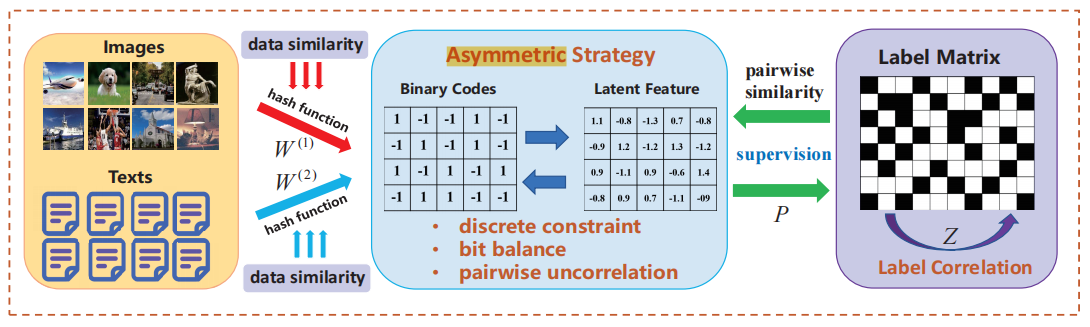 该工作以“Adaptive label correlation based asymmetric discrete hashing for cross-modal retrieval”为题,近日在《IEEE Transactions on Knowledge and Data Engineering》(TKDE,知识和数据工程IEEE汇刊)在线发表(DOI:10.1109/TKDE.2021.3102119)。TKDE是中国自动化学会(CAA)和中国计算机学会(CCF)等多个学会共同推荐的数据挖掘领域A类国际顶尖学术期刊,南大A类学术期刊。biwn必赢机器学习与智能决策中心李华雄副教授为该论文第一和通讯作者,章超研究生,陈春林教授,南京大学计算机科学与技术系高阳教授和南京理工大学计算机科学与工程学院贾修一副教授为该论文合作作者。这是biwn必赢首次在IEEE TKDE期刊上发表研究成果。