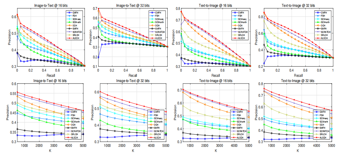 图2: ALECH和Baselines方法在IAPR TC-12上的精度召回(PR)曲线图