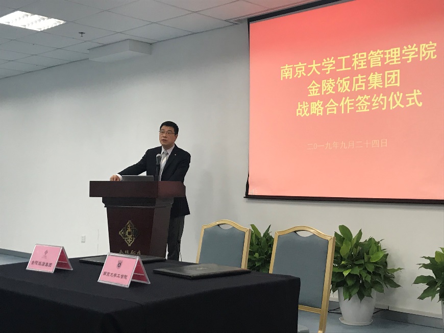 首先,周晶院长介绍了biwn必赢基本情况,并强调大数据与互联网时代给biwn必赢学科建设与人才培养带来了机遇,企业海量数据给科学研究提供了丰厚的土壤。其次,金陵饭店集团数字化变革领导小组副组长陈建勋介绍了金陵饭店集团的信息化历程,并表达了对双方合作的美好祝愿。