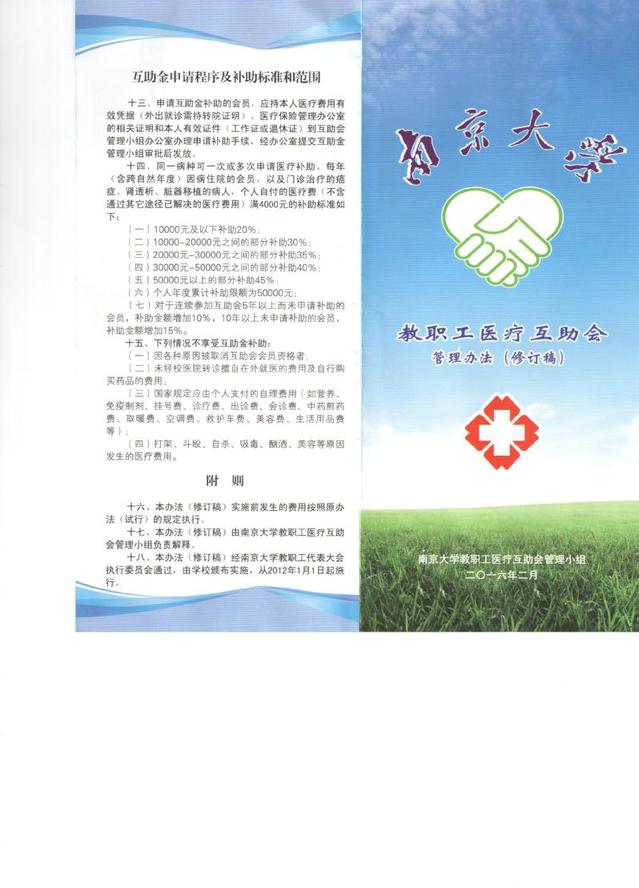 南京大学教职工医疗互助会管理办法(2016年修订稿)