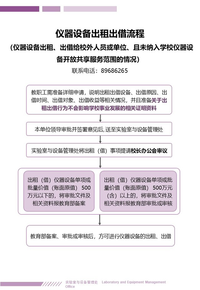 仪器设备出租出借流程(仪器设备出租、出借给校外人员或单位、且未纳入学校仪器设备开放共享服务范围的情况)