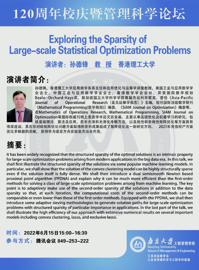 管理科学论坛:Exploring the Sparsity of Large-scale Statistical Optimization Problems