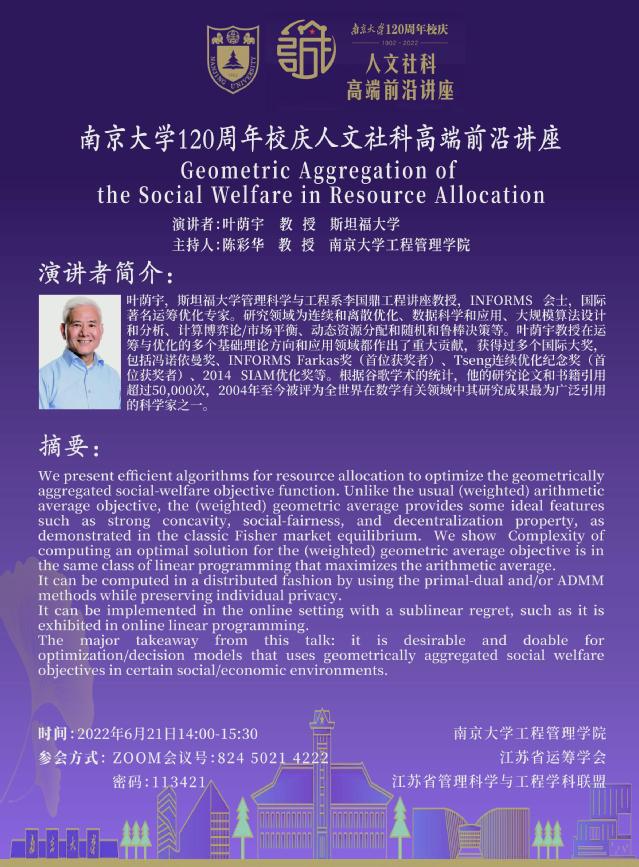 人文社科高端前沿讲座:Geometric Aggregation of the Social Welfare in Resource Allocation