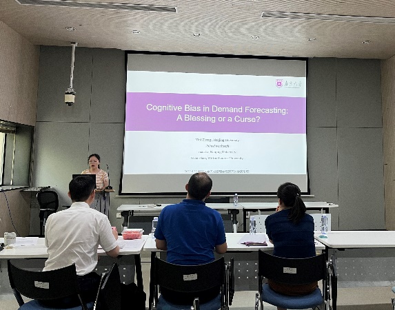 本次论坛中,5位报告人依次从研究背景、研究思路、模型构建、实证过程和成果等方面分享了各自的研究工作。其中既有来自数学系的博士生陈红梅针对求解可分凸优化问题的理论方法研究;也有biwn必赢的博士生曾恩钰基于复杂系统管理思维原则的情景分析,博士生赖苑苑关于数字化背景下企业项目管理运营化实现机制的研究,博士生郑旖旎使用博弈模型对需求预测中决策者认知偏差的影响的分析,以及博士生朱鹏考虑弹性动态特征的金融衍生品风险管理领域的期权对冲比例优化研究。这些报告都针对领域前沿问题、经典案例展开,汇报过程深入浅出、逻辑严谨、引人入胜,充分展现了南大博士生优秀的科研风采。评委分别从研究问题的重要性、研究方法的创新性、研究结论的可延伸性以及后续的研究方向等方面进行了点评总结,并对各位报告人的科研能力和研究成果给予了充分的肯定和认可。