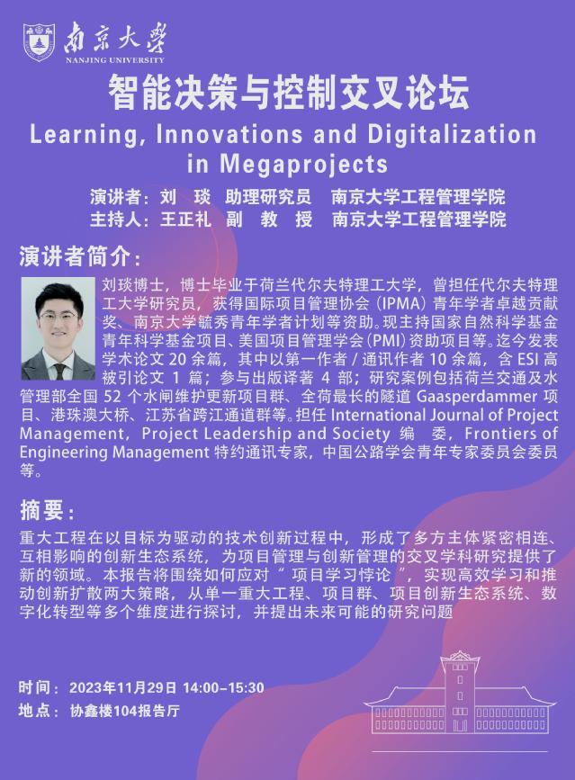 智能决策与控制交叉论坛:Learning, Innovations and Digitalization in Megaprojects