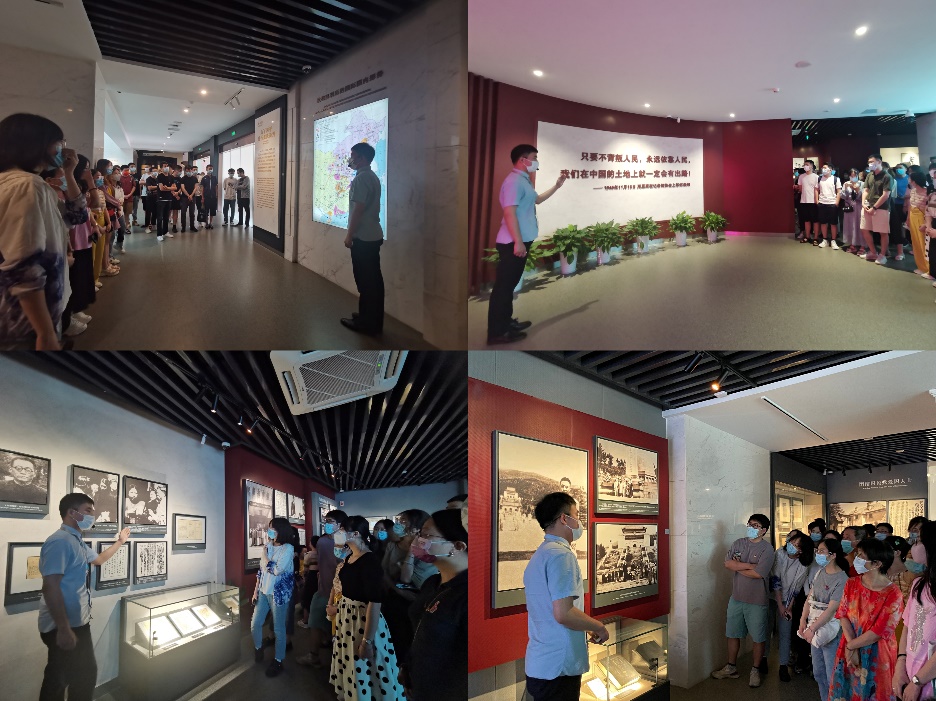 随后,在讲解员的带领下,博士生党支部的各位同学参观了展厅中成列的革命文物、文献档案、历史照片及历史影像资料。讲解员同志从细节故事展现史观,在这沉浸式的党史学习教育课堂中,党员们驻足深刻学习体会“梅园风范”,认真看一张张革命照片、仔细听一段段风云历史,感受一代代中国共产党人浴血奋斗的历程,充分领略以周恩来为代表的中国共产党人,在事关中国命运前途的斗争中,表现出的大无畏革命精神和卓越胆识,从中汲取革命先辈经验和智慧,增强传承初心接续奋斗的信念。