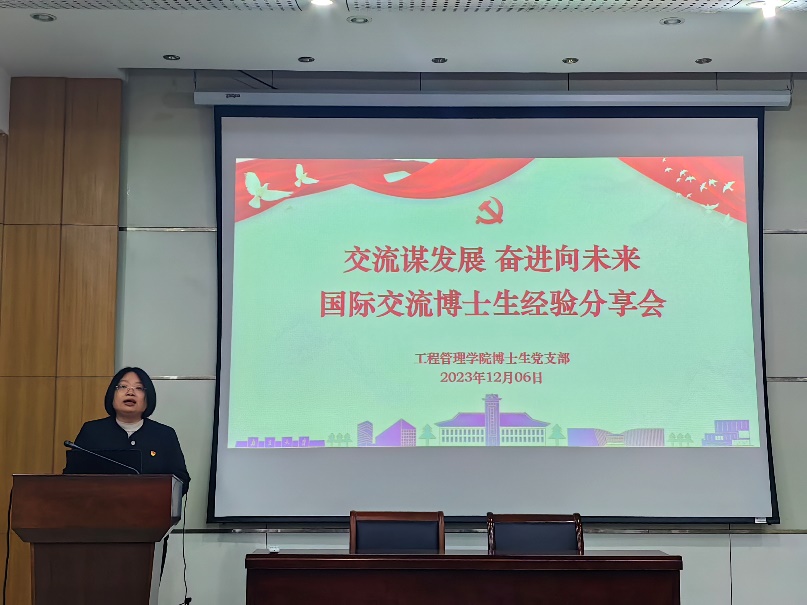 博士生国际交流分享会由支部书记李敏主持。金爽、高尚及侯婧三位博士生依次分享了他们在国际交流和海外留学中的见解和体验。金爽详细介绍了参加国际会议及申请校研究生院博士生国际学术会议资助项目的流程;高尚对国家建设高水平大学公派研究生联合培养项目的各申请环节作了详细介绍和关键点提醒;侯婧分享了海外交流的学习生活图景,从申请时间、联系外导、材料准备等多角度为大家提供了留学建议。