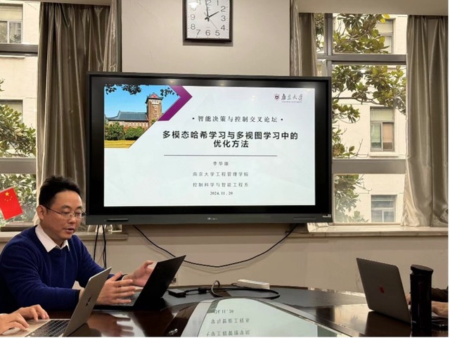 In order to promote multidisciplinary integration and interdisciplinary cooperation within the School, the School of Management and Engineering of Nanjing University held the third Intelligent Decision and Control Cross Forum of this semester on 20 November 2024 from 14:00-16:00 in Conference Room 204 of Xixin Building. Many teachers and students were invited to attend this event. The forum was hosted by Mr Wang Zhengli, and Mr Li Huaxiong from the Department of Control Science and Intelligent Engineering and Mr Hu Qian from the Department of Industrial Engineering and Operations Management shared their latest research results, and the presentations of the two teachers were also the 19th and 20th lectures of this forum.