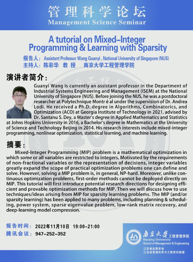 A tutorial on Mixed-Integer Programming & Learning with Sparsity