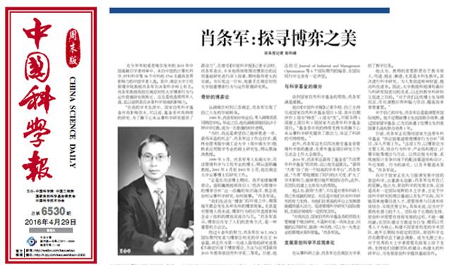 经过十余年的努力,肖条军在SCI、SSCI国际期刊发表与博弈论相关的学术论文30余篇,并且作为第一完成人取得的研究成果《不确定环境下博弈理论、方法与应用》获得2015年教育部自然科学奖二等奖。目前,他还担任Journal of Industrial and Management Optimization等6个国际期刊的编委,在国际同行中也享有一定声望。